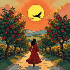 2023Digitale prent. Vrouw droomt over prettige belevenissen.